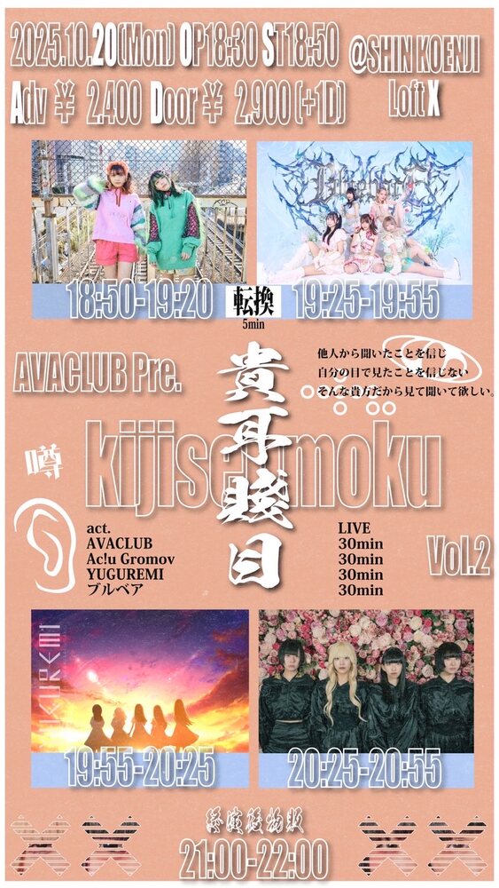 AVACLUB Presents 「貴耳賤目vol.2」at 新高円寺LOFT