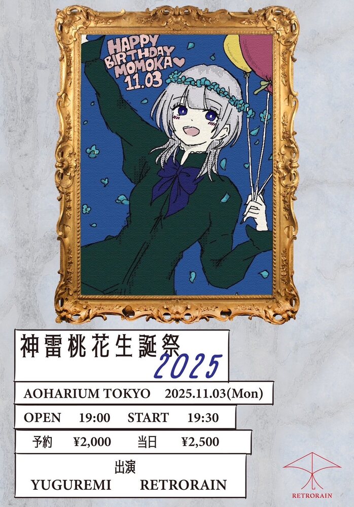 「神雷桃花生誕祭2025」at AOHARIUM TOKYO SCHEDULE 2025/11/03(月) AOHARIUM TOKYO 地図を表示 「神雷桃花生誕祭2025」at AOHARIUM TOKYO OPEN 19:00 / START 19:30 ライブ▶︎ 特典会▶︎ お目当て特典🎁サインありチェキ券+YUGUREMI ポイントカード1P ▼チケット料金▼ 予約¥2,000 / 当日¥2,500 +1D チケット予約サイト URLをコピーする 報告する